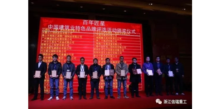 “百年匠星”中國(guó)建筑業(yè)特色品牌企業(yè)評(píng)選活動(dòng)是由《百年建筑網(wǎng)》與《中建協(xié)認(rèn)證中心》聯(lián)合開展,網(wǎng)上公開投票,專家通過審核,評(píng)選出中國(guó)建筑業(yè)特色品牌優(yōu)秀施工企業(yè)和中國(guó)建筑業(yè)特色品牌優(yōu)質(zhì)材料設(shè)備供應(yīng)商各50家。浙江信瑞重工獲此榮譽(yù),為品牌發(fā)展里程碑上寫下了濃墨厚彩的一筆。