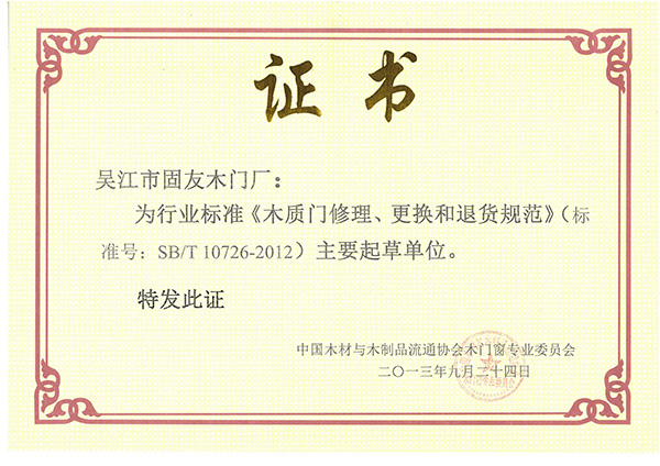 《木質(zhì)門修理、更改和退貨規(guī)范》標準主要起草單位