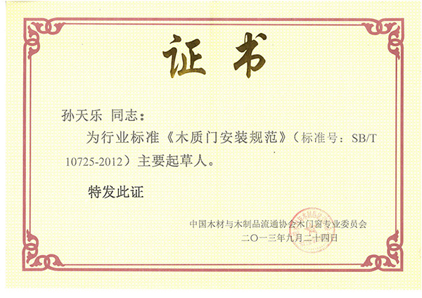 《木質(zhì)門安裝規(guī)范》標準主要起草人